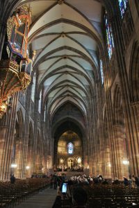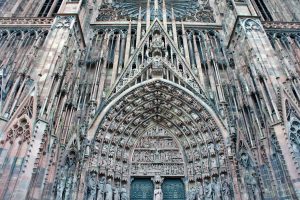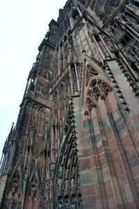 聖母院大教堂: 歌德曾讚嘆其為「莊嚴的神之樹」。其粉紅色的外觀源自當地的伏蓋山脈砂岩。